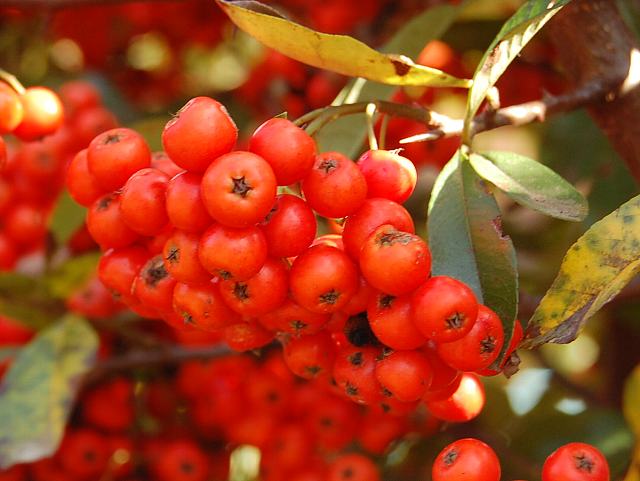 属名の Pyracantha はギリシャ語で「pyro(炎)+acantha(刺)」から。