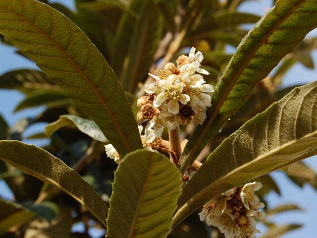 属名の Eriobotrya はギリシャ語の「erion(軟毛)+botrys(ブドウ)」から。