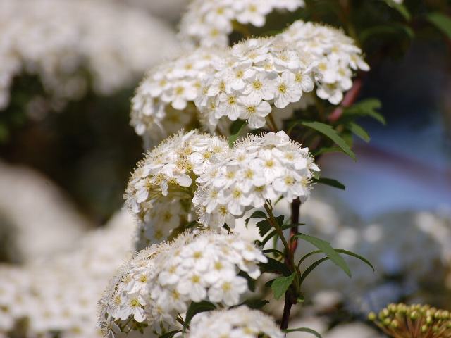 花色は白が主だが、丁子咲きや八重咲き、花弁が細いものなどいろいろな品種がある。