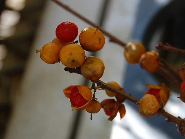 属名の Celastrus はギリシャ語の「Celastros(セイヨウキヅタ)」から。