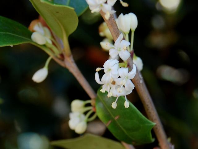 葉の脇にキンモクセイに似た芳香のある小花を咲かせる。