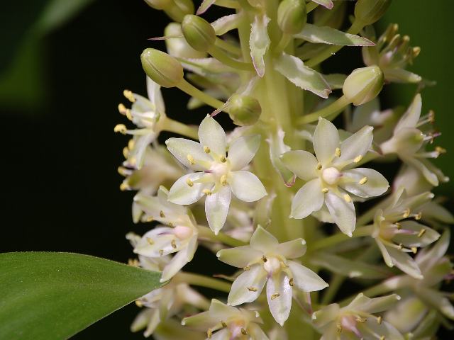 開花時期になると、茎先の葉に白色のものが交じるのが特徴。