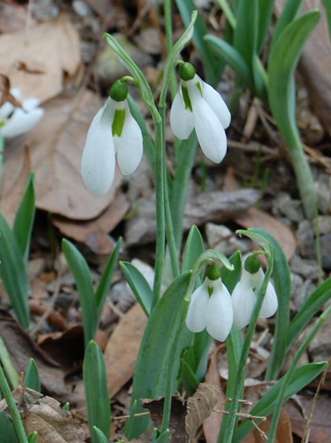属名の Galanthus はギリシャ語の「gala(ミルク)+ anthos(花)」から。