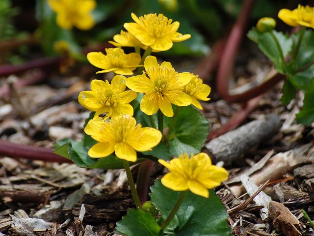 属名の Caltha はラテン語の「calathos(杯)」からきており、強い匂いのある黄色い花をさすラテン名である。